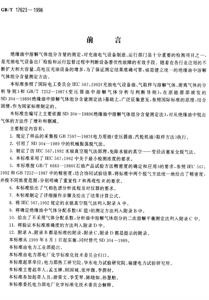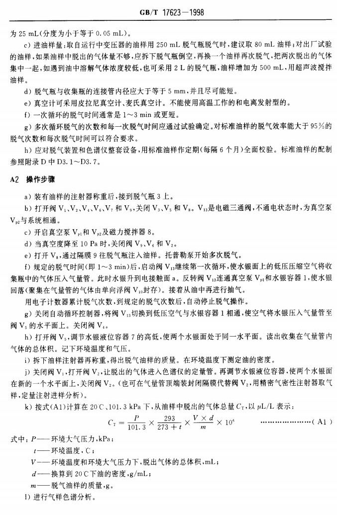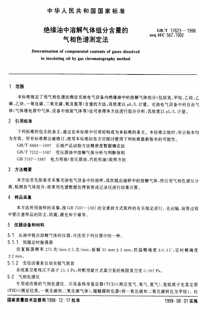 GBT 17623-1998 絕緣油中溶解氣體組分含量的氣相色譜測(cè)定法